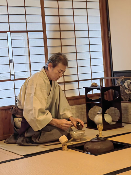 石州流野村派という武家茶道の流派の家元業をしている、弊社の代表です。