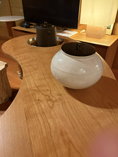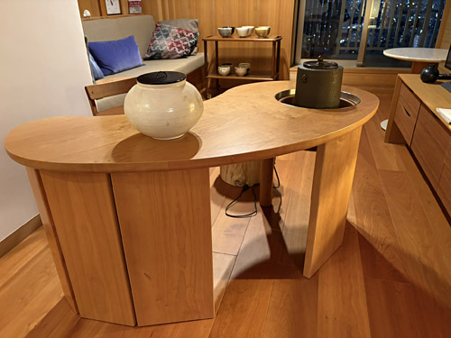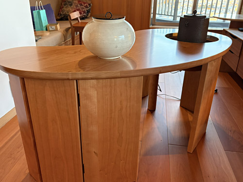 HOME > ブログ > オリジナル茶道具 > 曲線が紡ぐ「立礼卓」~茶釜のある豊かな時間~