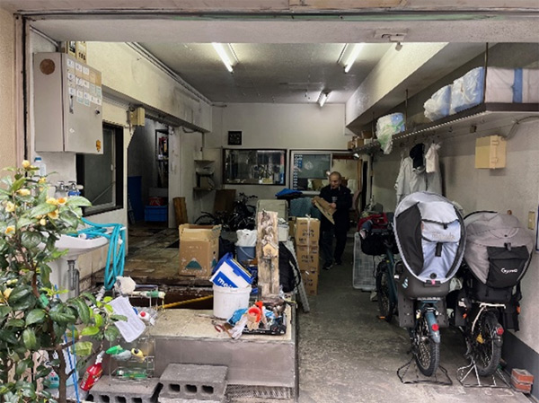 商売の時に使用されていた、冷凍機器などの基礎を斫って平らなコンクリート床を造る