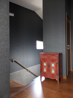 | 階段下の空間を利用して、 階段状の地下ワインセラーを設けている。 |