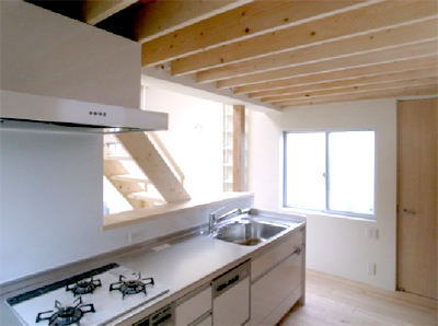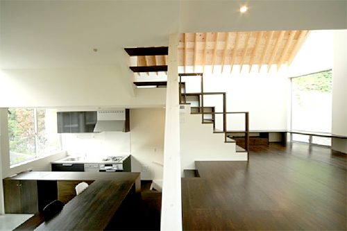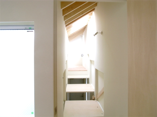 | 吹抜に階段を設けて高窓から屋上へ。 | ||