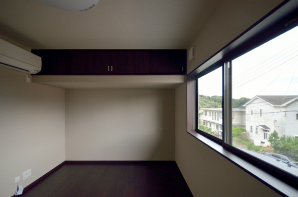 敷地の中で一番長く距離をとれるところに廊下状の書斎を設ける