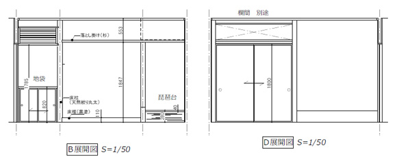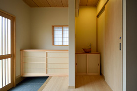 | 上部は吹き抜けで、開放感がある | 茶室水屋から見た様子 | |