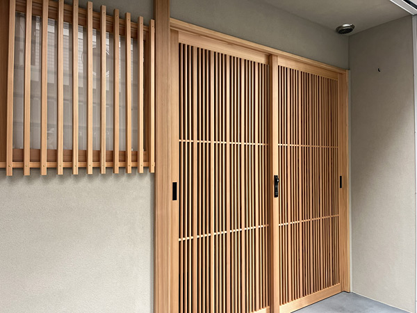 駅近くの店舗の多い場所なので、玄関にはシャッターを設けて防犯対策をとりました。