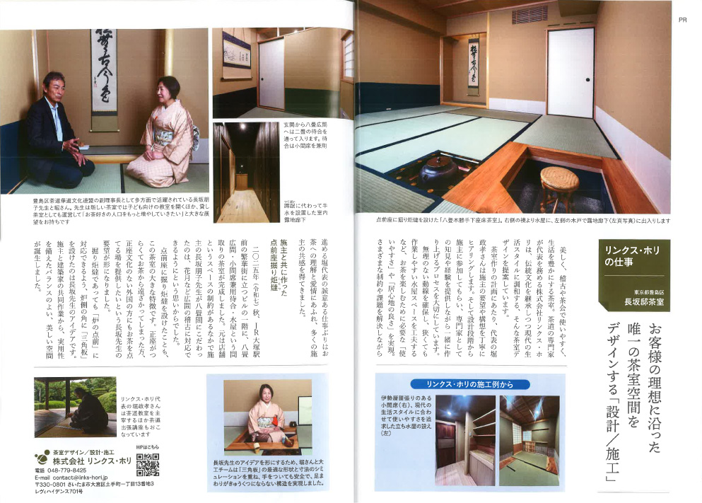 淡交社から出版されている茶道雑誌「なごみ」へ弊社にて茶室デザイン設計・施工を行った記事が掲載されました。こちらの画像より、記事をご覧いただけます。